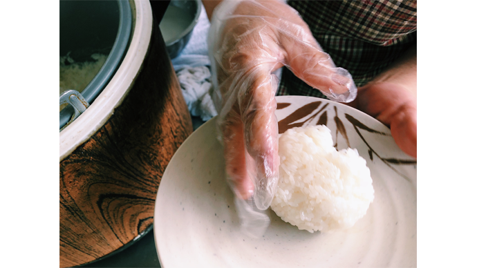 注文してからお母さんに優しく握られたほくほくのおにぎり。