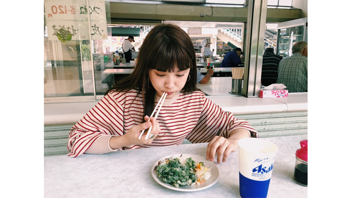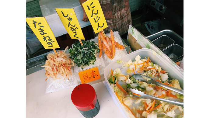 村田倫子的№1グルメは、「定食の店 むさし」の「野菜天ぷら付きおにぎり 320円」