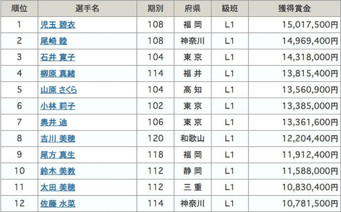 ※9月9日現在の賞金ランキング